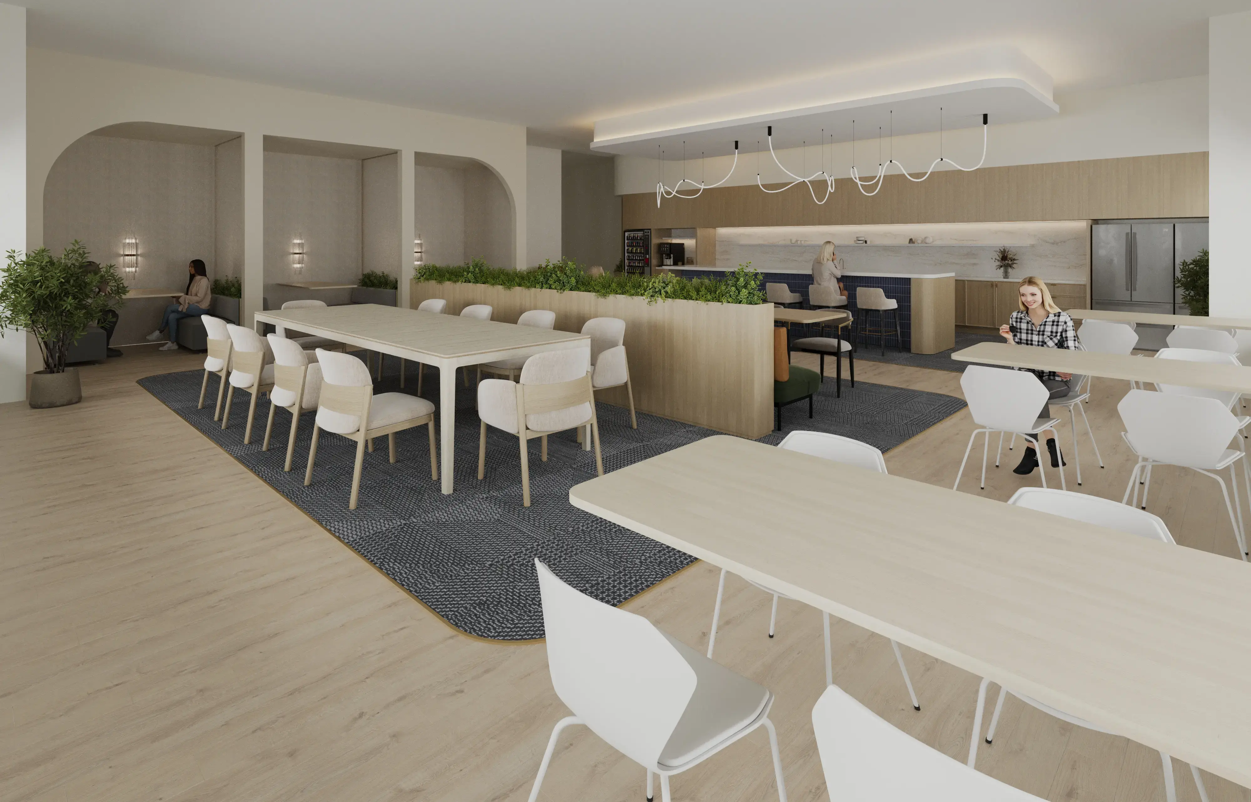 Small design details often define the success of a project. CGI rendering allows these elements to be presented with high realism. Adding people to office renders enhances the sense of scale, atmosphere, and daily use.