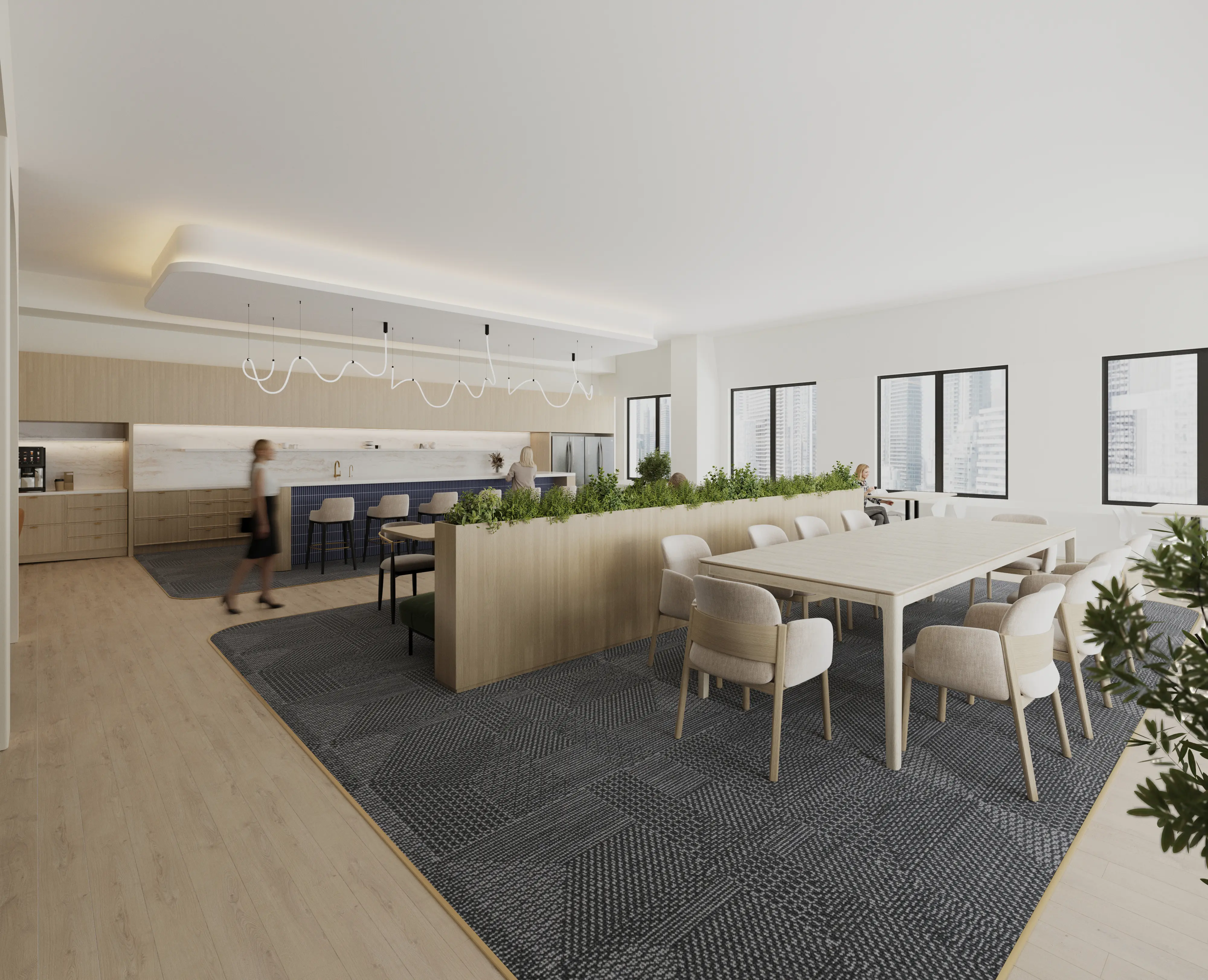 Overall, this project serves as a conceptual demonstration of our 3D rendering capabilities for large-scale commercial interiors.